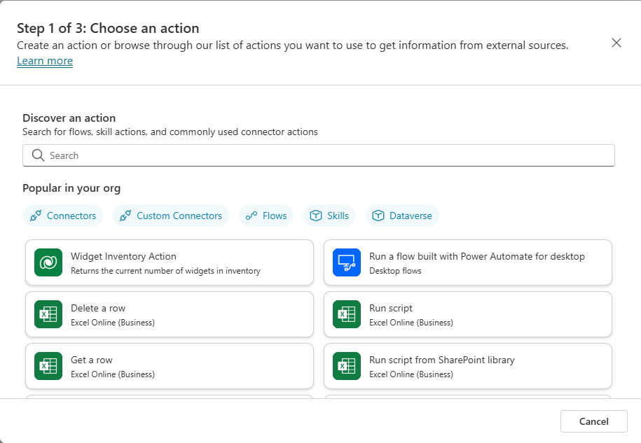 Actions let a copilot do stuff. What stuff can it do? Well it can update Excel spreadsheets for you, but it can also get the weather from Bing Weather. Actions are how your copilot can interact with other systems outside of the copilot itself.
