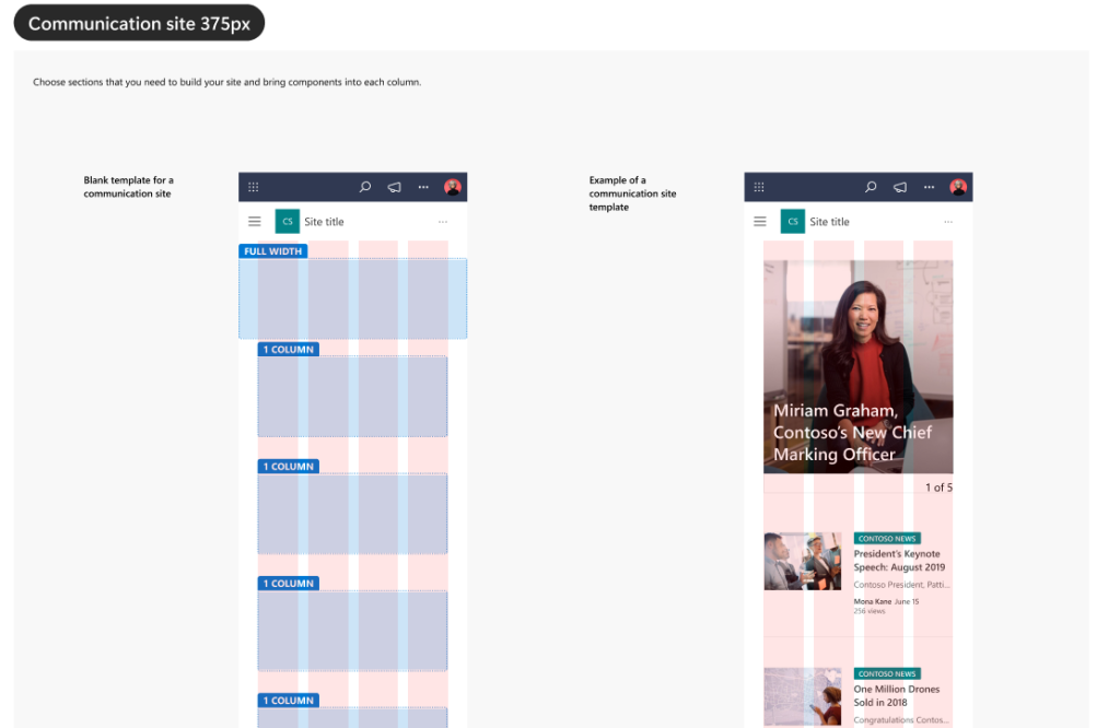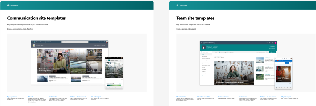 Now you can include the left-hand navigation in your site designs. This is great if you’re wireframing a modern team site and want the navigation reflected in the design. Using this kit, you can create Team, Hub, and Communication sites.