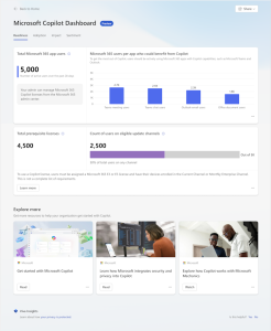 The dashboard provides actionable insights to get ready to deploy AI, drive adoption based on how AI is transforming workplace behavior, and measure the impact of Copilot now and over time, across three metrics: Â